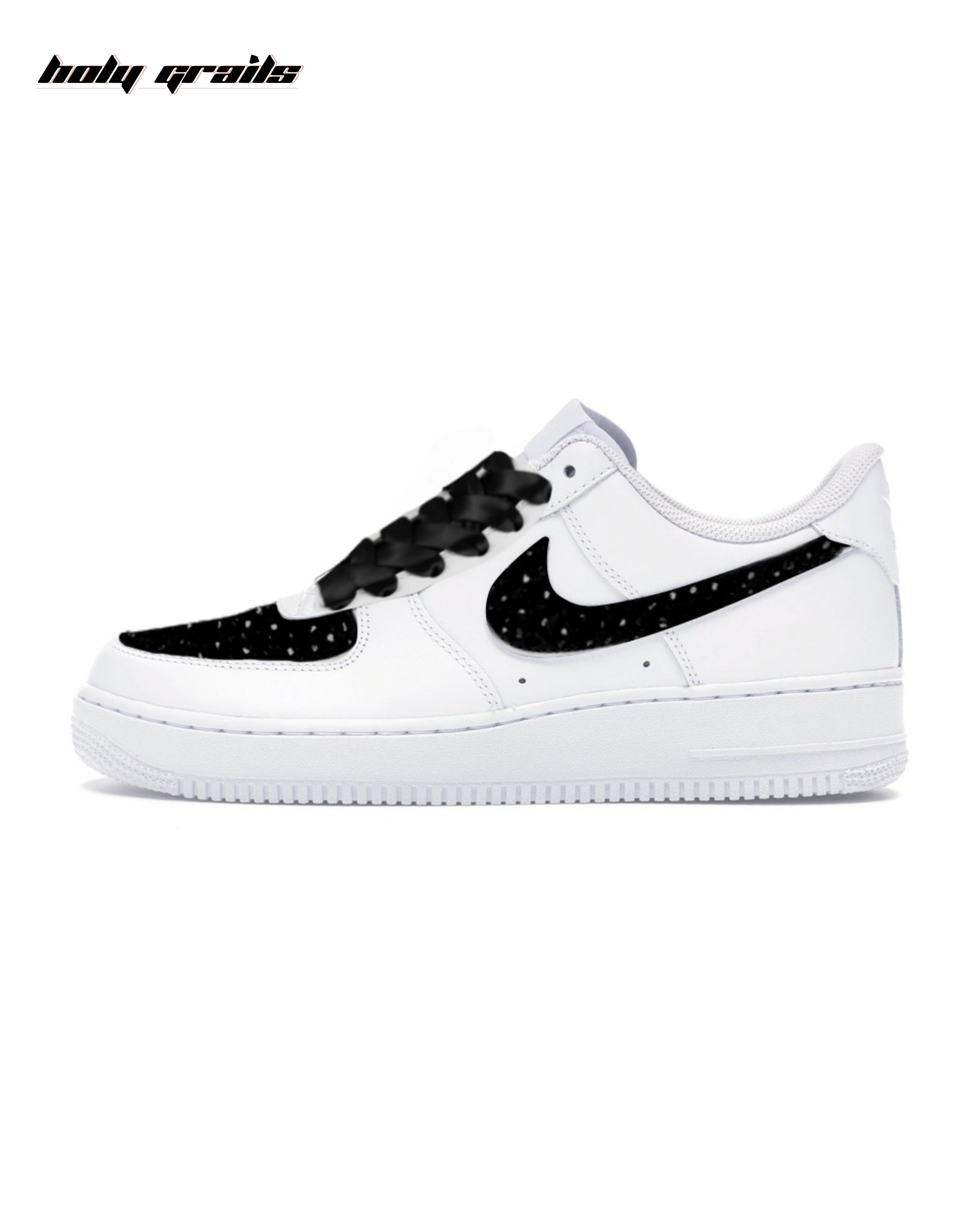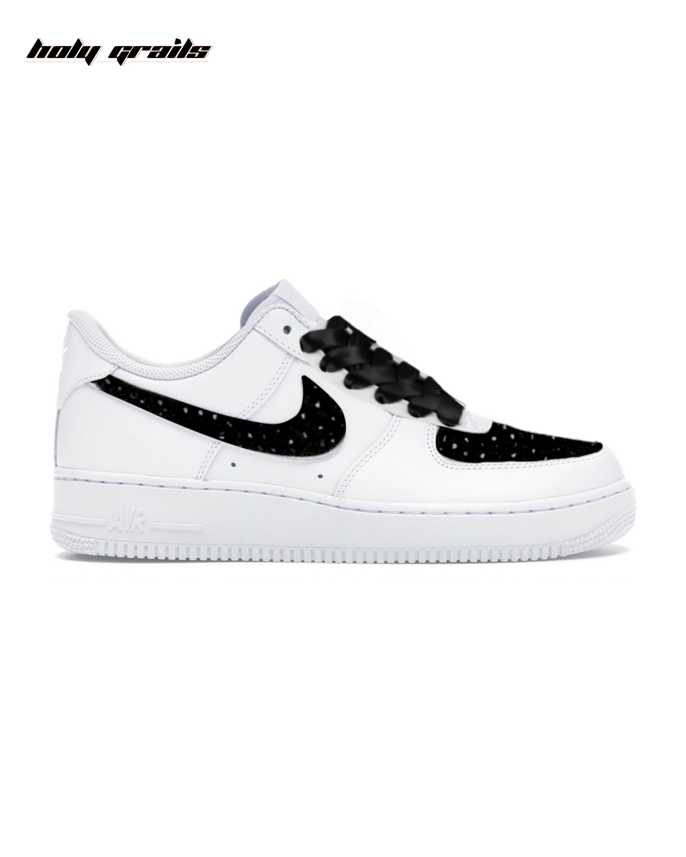 The classic white silhouette is elevated with hand-placed, high-quality crystals. The Nike Swoosh and toe box overlay feature meticulously handset black crystals with tiny clear accents, creating a captivating "Starry Night" shimmer that catches the light with every step. Finished with bold black laces, these unique sneakers are a wearable piece of art. Perfect for making a glamorous statement, they combine iconic comfort with bespoke sparkle.