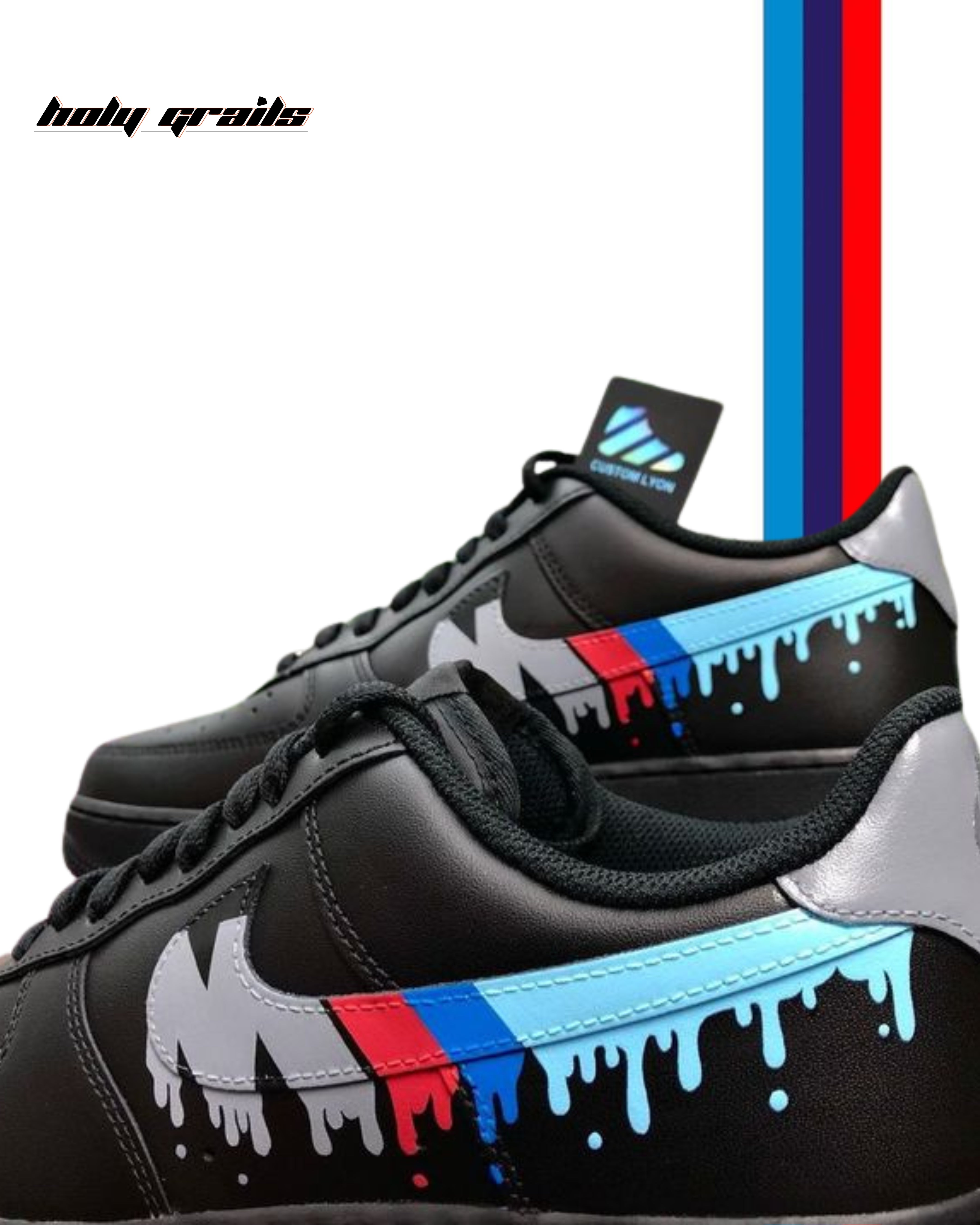 Our unique BMW-themed Air Force 1 sneakers will transport you to the heights of luxury. Every pair is hand-painted in elegant, sophisticated colors and bears the famous BMW insignia on the Swoosh, flawlessly combining classic Air Force 1 with automotive expertise. These sneakers are ideal for automotive fans and fashionistas alike, embodying BMW's signature beauty and performance.