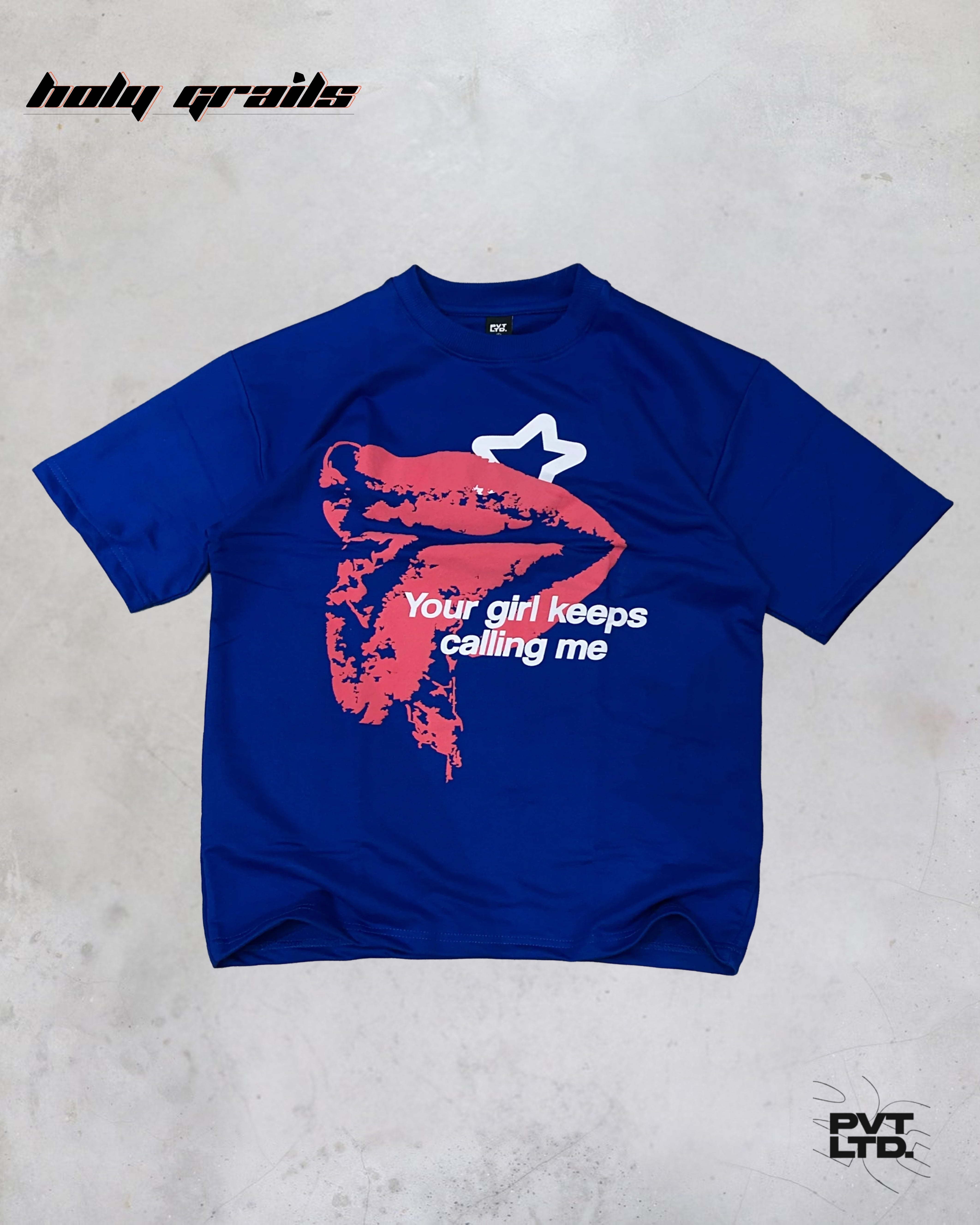 'Your Girl Keeps Calling' Blue Oversize Tee HG x Pvt Ltd