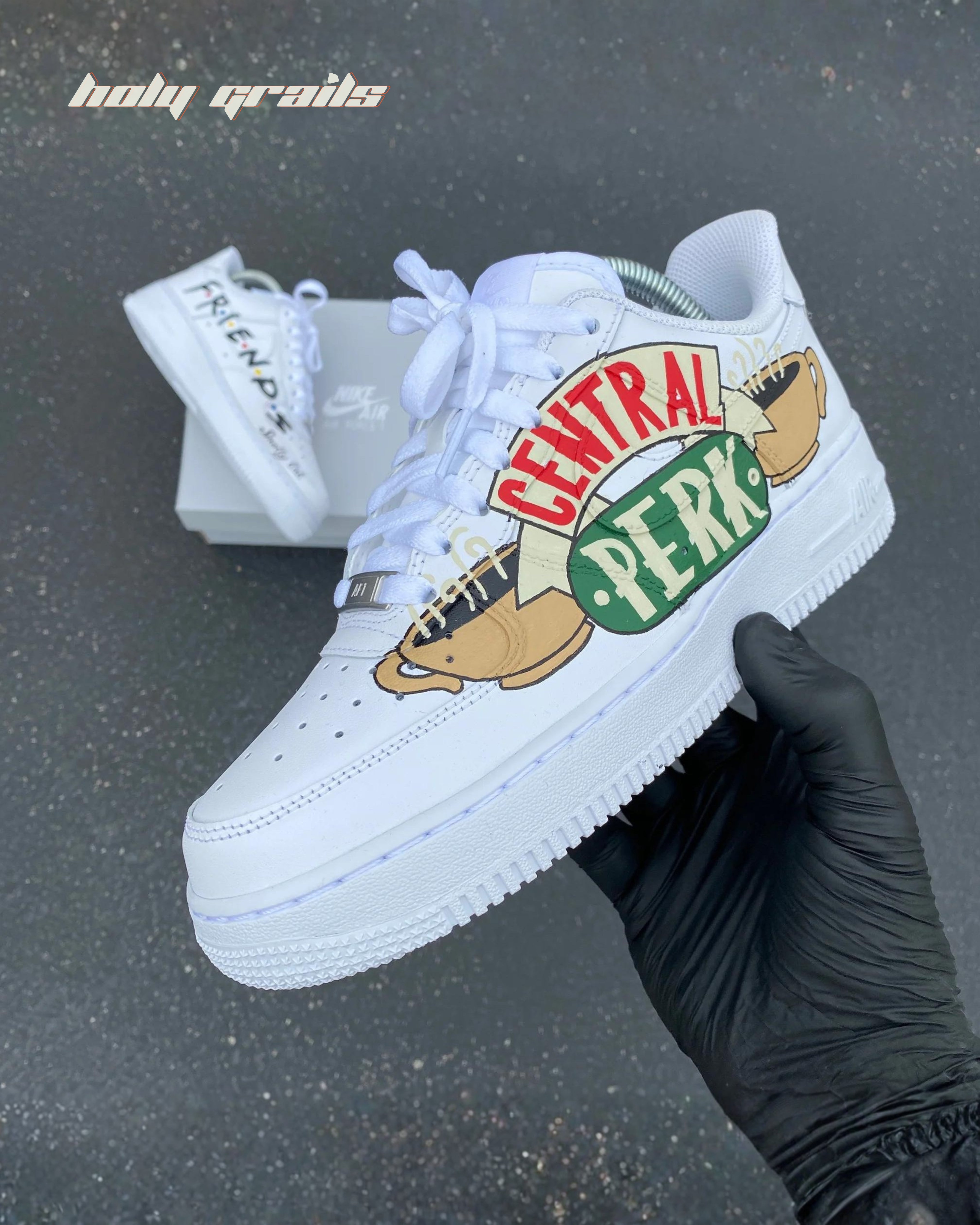 Celebrate your love for the iconic TV series "Friends" with these custom Air Force 1 sneakers. Hand-painted with the beloved Central Perk logo, these sneakers bring a touch of nostalgia to your everyday style. The vibrant design captures the essence of Monica, Ross, Rachel, Chandler, Joey, and Phoebe's favorite hangout spot. Perfect for fans who want to keep the spirit of "Friends" alive with every step they take.